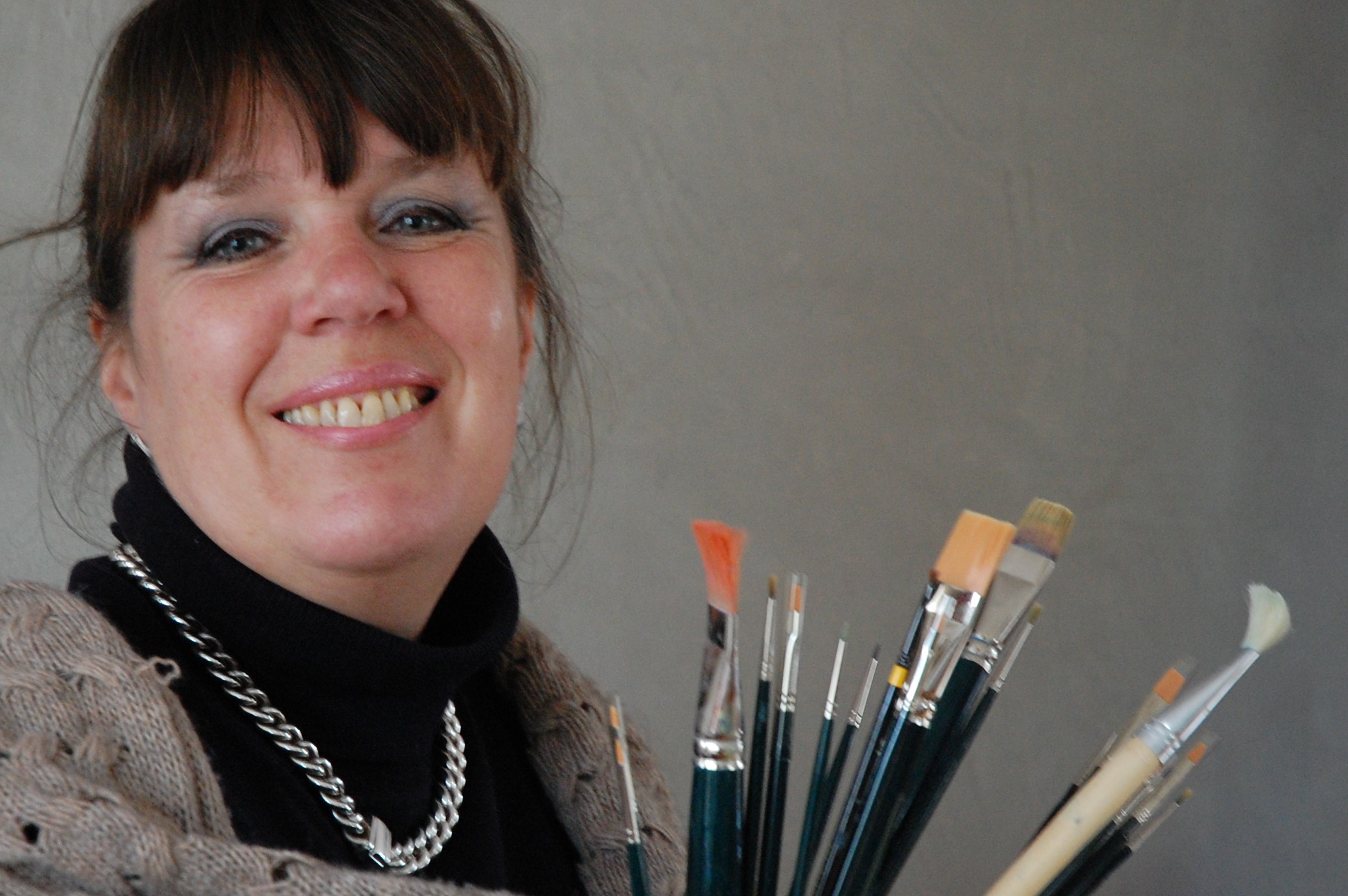 Haar hulpmiddelen zijn olieverf op doek en penselen om haar gedachtengoed te verbeelden. De natuur speelt daarin een hoofdrol. In haar werk ziet men een gelaagdheid. Het schilderij is dus in lagen opgebouwd waardoor dit sterke invloed heeft op het ontstaan en de droogtijd van het schilderij. De interactie tussen de realiteit en haar ontwerpersgeest geeft vorm aan de beeldtaal die ze gebruikt. Graag laat ik u zien wat mijn zoektocht naar de werkelijkheid als kunstenaar u te bieden heeft, zoals zonsondergang aan zee, vlinder badend in de zon, koe in de wei, bewolkt weer of in de zon, vliegende adelaar, zuurstof in het water bij de sluierstaartvis ….etc. De zindering van o.a. het zonlicht op het natuurschoon brengt verwondering ten opzichte van de natuur teweeg. Het ongrijpbare vastleggen is datgene wat jezelf niet in de hand hebt, het gebeurt, het ontstaat. Het moment vastleggen tussen de realiteit, de natuur benadrukt door de oneindige cirkel waarbij er geen toeval is maar een wisselwerking tussen de kunstenaar en het bovennatuurlijke. Ik hoop dat u onder de indruk bent van deze visie en de oneindige werkelijkheid in de ogen van de kunstenaar.